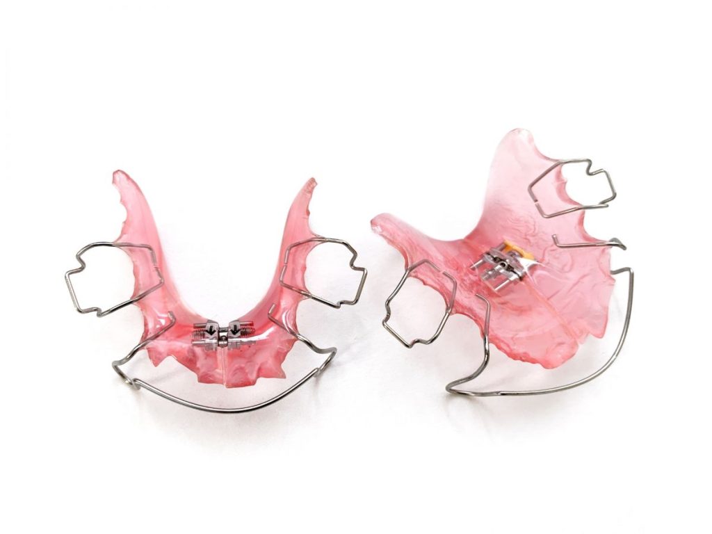 拡大床は、取り外しが可能な装置で、一般的にはアクリル樹脂で作られた床部分と、歯に固定するための金属製のバンドやクラスプで構成されています。装置の中央にはスクリューがあり、これを定期的に回すことで徐々に装置が拡大され、顎の骨が広がる仕組みになっています。拡大は数か月から1年程度の期間をかけて少しずつ進められ、成長期にある顎の柔軟な骨を利用して効果的に拡大が行われます。