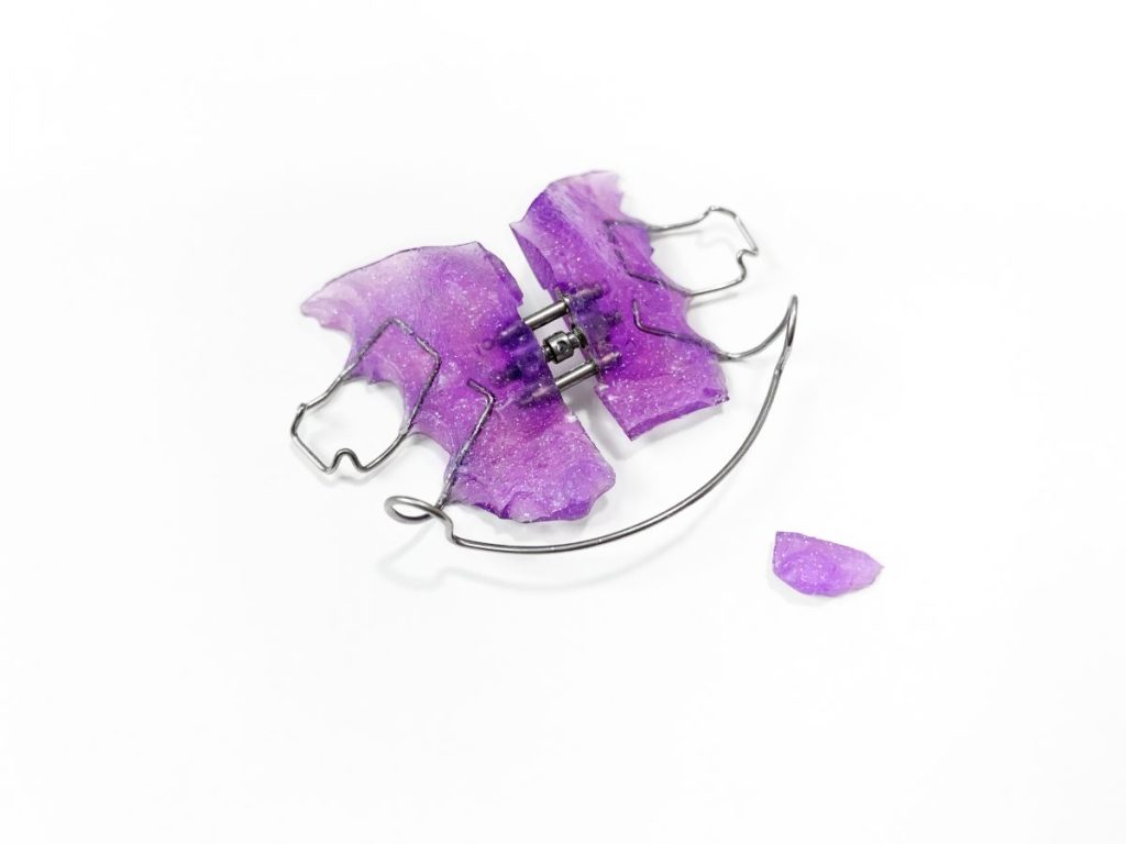 一方、急速拡大装置(RPE)は、上顎の成長段階にある子どもの顎幅を広げるために使用される固定式の装置です。中心に回転ネジがあり、保護者や患者自身がネジを回すことで徐々に上顎を左右に広げていきます。この装置も左右の奥歯に装着されたバンドを土台として固定されており、強い矯正力を支えるためにはしっかりとしたバンド装着が必要です。