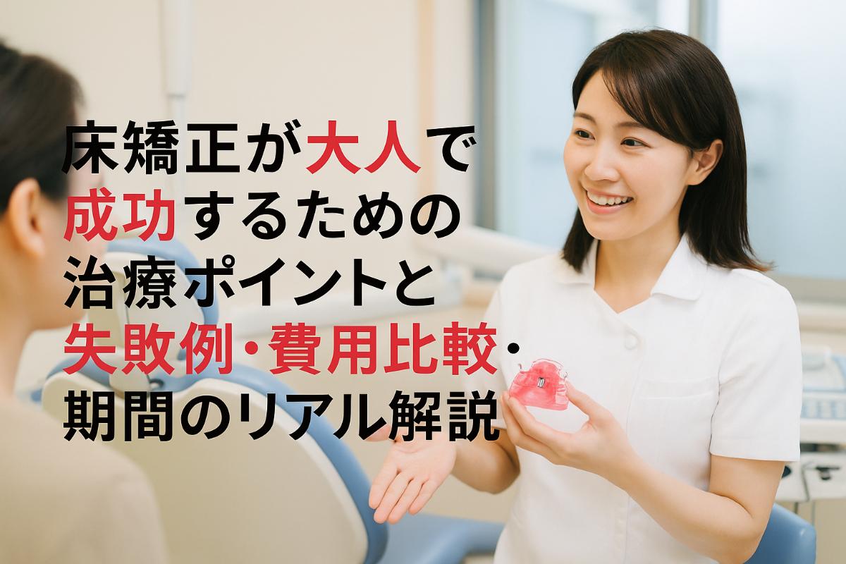 「今からでも遅くない」「自分に合う治療法を知りたい」そんな方に、データや失敗回避のポイント、他矯正法との比較まで解説します。最後まで読むことで、大人の床矯正で後悔しないための具体的な判断基準と日常生活の工夫まで、確かな知識が身につきます。